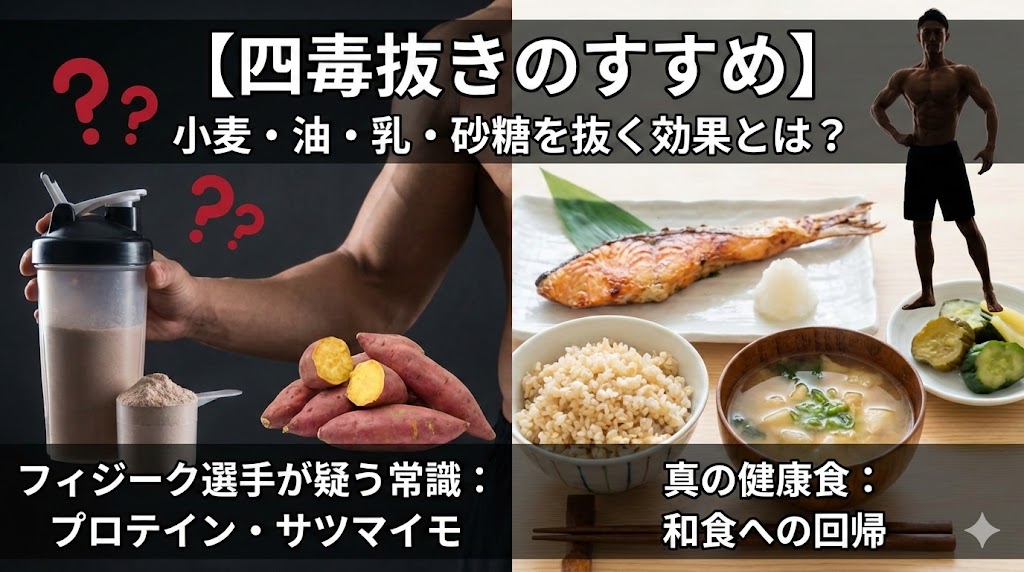 【四毒抜きのすすめ】フィジーク選手がプロテインとサツマイモを疑う理由。小麦・油・乳・砂糖を抜く効果とは?