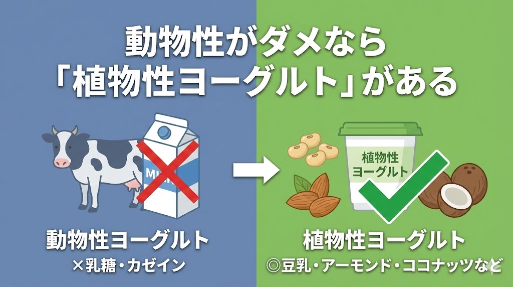 それなら、牛乳ではなく植物由来のミルクを発酵させた「植物性ヨーグルト」への切り替えが最適解です。