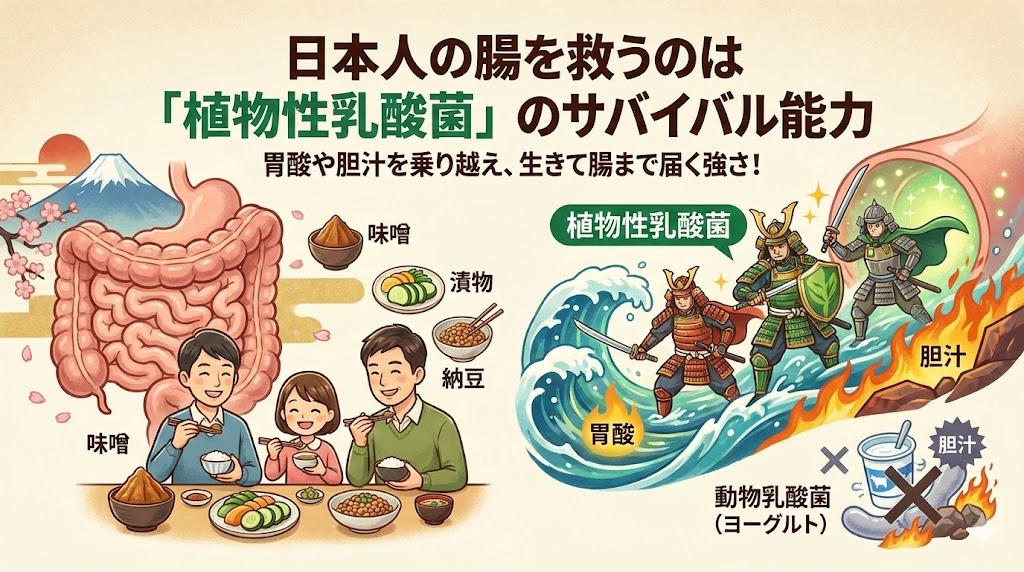 その答えは、私たちの祖先が1000年以上前から食べ続けてきた「植物性乳酸菌」にあります。