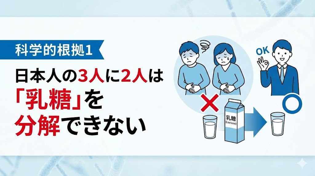 科学的根拠1:日本人の3人に2人は「乳糖」を分解できない